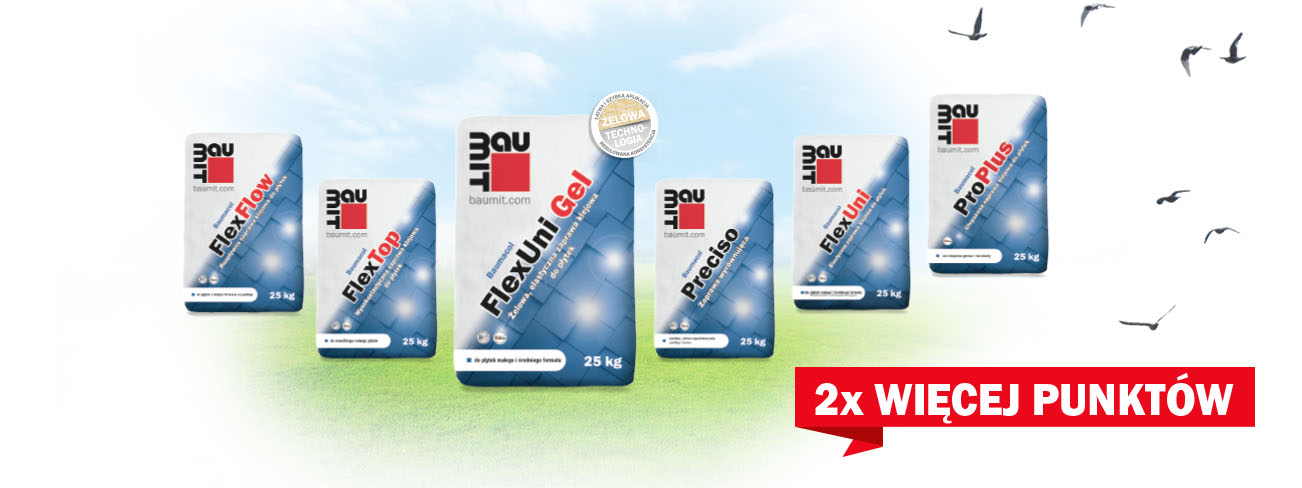Zdobądź 2 x więcej punktów za wybrane kleje i produkty Baumacol: FlexTop, FlexFlow, FlexUni Gel, FlexUni, ProPlus oraz Preciso.